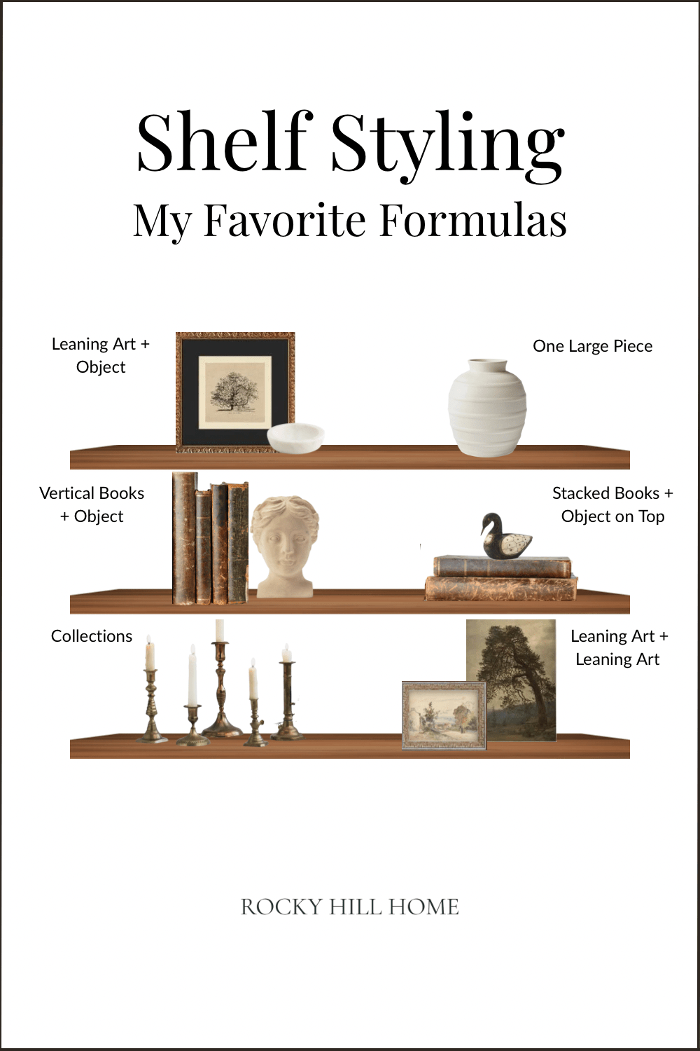Styling open bookshelves is all about creating a layered, balanced display that feels curated rather than cluttered. Vary the heights, shapes, and textures of your items so the shelves feel dynamic and dimensional, not flat. Incorporate negative space intentionally. Every shelf doesn’t need to be full, and distribute visual weight by placing larger or heavier pieces across different levels.